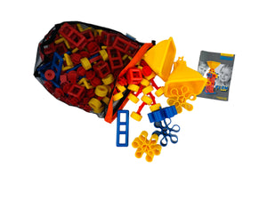 The basic geometric pieces can be easily combined with connectors. Children will develop their fine motor skills, as they connect piece by piece. Before you know it you have a huge tower equiped with spinning wheels and a funnel.
