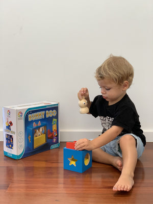 Smart Games Bunny Boo Game is a one player game that will have them thinking, reasoning, developing visual spatial skills, concentration, fine motor and dexterity. Bunny Boo doubles as a toy. It encourages learning of colours and position concepts such as on top of, beside, inside, behind.