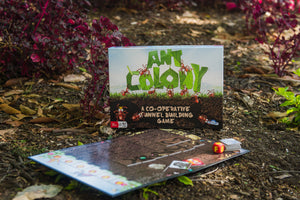 The Ant Colony Cooperative Game has players taking turns choosing tiles to try and build a tunnel for the Queen ant. If they can do this with at least two entrances and four rooms for the eggs - they win!