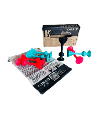Tossit is a two player game that promotes hand eye coordination and proprioception, particularly body awareness. Carefully aim your 3 coloured tossits, considering how much pressure to apply when throwing as well as the angle. The person who has their tossits closest to the jack wins the points. A fun way to build skills, with multiple ways to play.