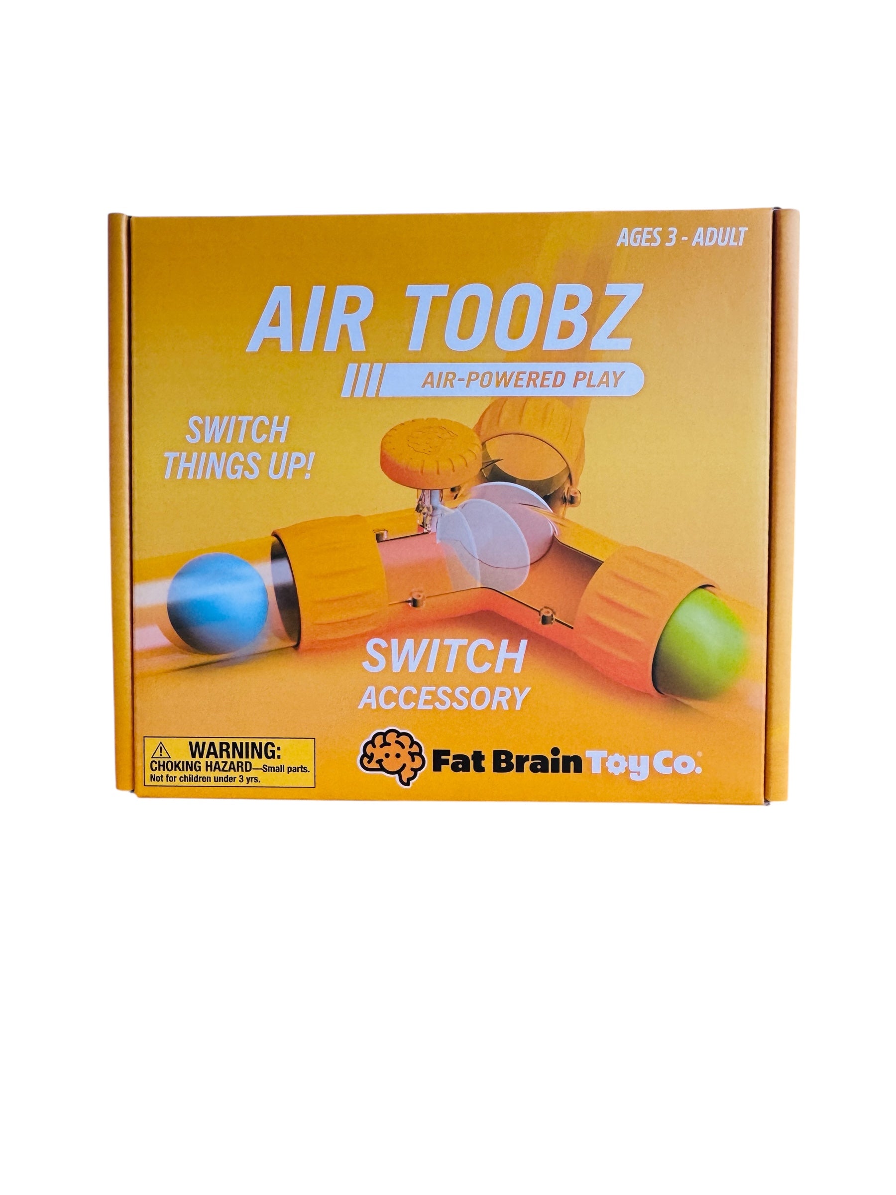Fat Brain Air Toobz is the ultimate construction and STEM toy. Create a pathway with the tubes and connectors, then switch the fan on and watch the balls fire through your arrangement. Adjust the speed by changing the air flow, hover the balls in mid air, or let your imagination run wild with loops and swirls and more. See below for contents of the Base and Expansion pack (each sold separately).