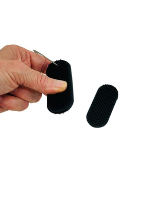 One gives soft and flexible tactile input with its silicone bristles. Use this to brush over the skin and hands, or pick at with your finger nails.