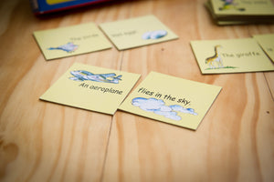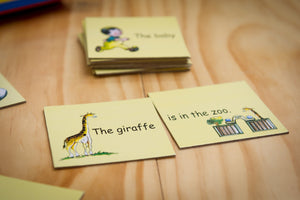 Level 1 - subject and predicate matching. 30subject cards and 30 predicate cards to create sentences.