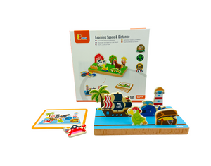 The VIGA Learning Space and Distance is a delightful wooden game that teaches spacial awareness and prepositions. Prepositions are an important part of speech and language development. They include position words such as beside, below, front etc.
