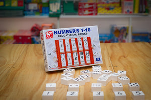 The Coko Bricks Numbers 1-10 are a set of 30 educational bricks to help learn to identify and distinguish numbers by ‘dots’ (counting), words and/or numerals. Very easy to use and a concrete kinesthetic approach to learning literacy and play.