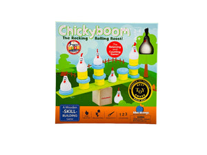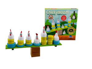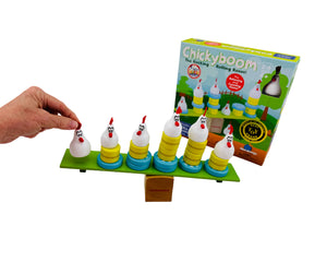 The award-winning Chickyboom Game incorporates fine motor skills and an understanding of balance to enable players to remove items from the balancing roost.