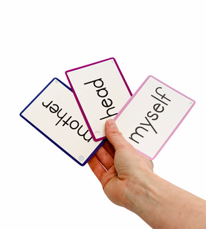 Words are arranged in an order based on complexity and the frequency with which they are likely to be encountered. On the back of each card is a simple example sentence demonstrating the context of the word.