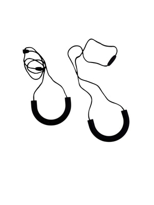 The Chewy Charms Necklace Chew - U Tube is a stylish minimalist tube shaped silicone chew that is worn as a necklace on a safe breakaway cord. The tube is thick yet pliable and rated for heavy use.