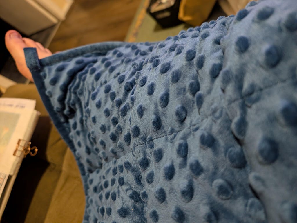 It's the perfect size to drape over my legs while they're up on the couch and feels soft and comforting with the right amount of pressure.