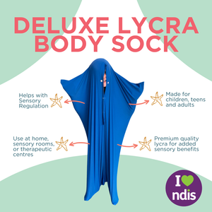 The Deluxe Lycra Body Sock is a fantastic sensory resource that provides deep pressure touch. The quality fabric gives excellent "push back" for proprioceptive input. Perfect for home, in an educational setting, for a sensory room or therapeutic centre, and is a great way for children, teens and adults to calm and self regulate.