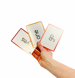 Words are arranged in an order based on complexity and the frequency with which they are likely to be encountered. On the back of each card is a simple example sentence demonstrating the context of the word.