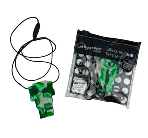 The Jellystone Robot Man Chew is a silicone, wearable chew mounted on a breakaway necklace cord for safety. It has several textures which double as tactile input and a fidget. This chew is made from food-grade silicone and is designed for mild chewers, with a chew factor level of ONE.