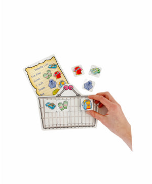 Older children can play more strategically by remembering where the cards from their list have been placed. The winner is the first player to collect all the items on their list and fill their trolley or basket!